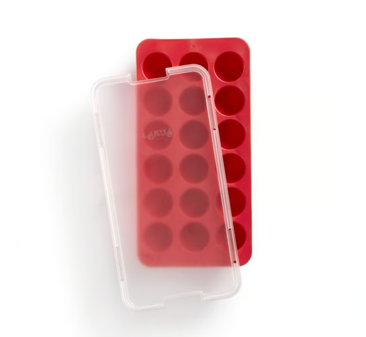 ¡La forma más divertida de refrescar tus bebidas! La bandeja para hielos redondos de Lékué está hecha de caucho flexible para desmoldar fácilmente. Incluye una tapa transparente que evita la transferencia de olores del congelador y permite apilarla con otros recipientes.