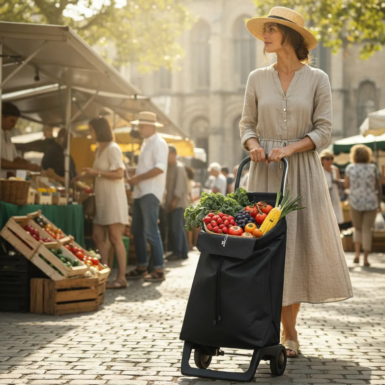 Su estructura ligera de aluminio y sus dos ruedas resistentes garantizan un desplazamiento suave y seguro, mientras que su diseño plegable facilita guardarlo en casa o en el coche cuando no lo necesitas. La bolsa amplia, con cierre ajustable y solapa protectora, permite transportar tus compras, ropa o cualquier objeto de forma cómoda y segura.
