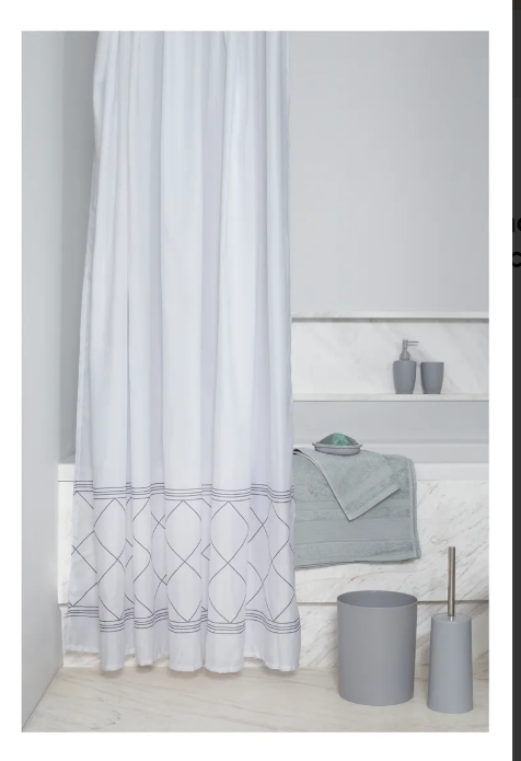 • Cortina de ducha Radiance de Sttelli, confeccionada en poliéster de alta calidad con resistencia al moho y la humedad.