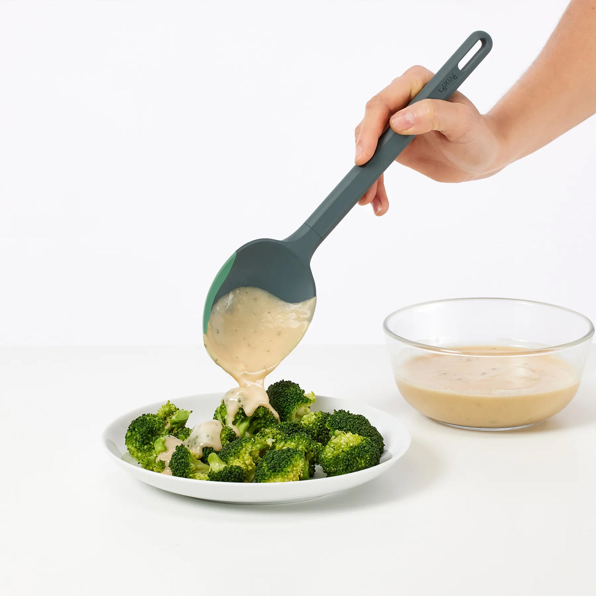 Ya sea en la cocina o directamente en la mesa, la cuchara Lékué es el toque práctico y elegante que necesitas para cada comida.