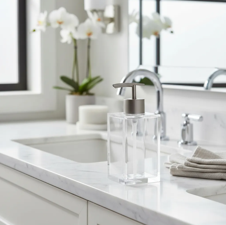 Agrega elegancia y funcionalidad a tu baño o cocina con el Dispensador de Jabón Líquido Metrópoli de Sttelli. Con un diseño moderno y minimalista, este dispensador está fabricado en acrílico transparente de alta calidad, lo que le da un aspecto limpio y contemporáneo que combina perfectamente con cualquier estilo de decoración.