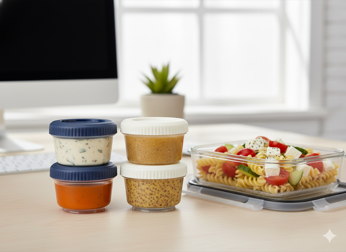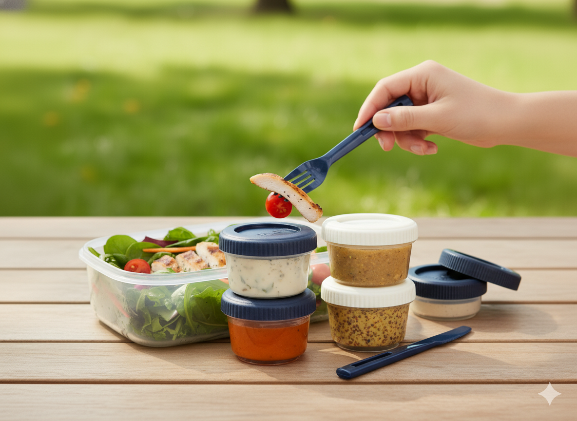 •A prueba de fugas: Mantén tus aderezos y salsas seguros durante el transporte.