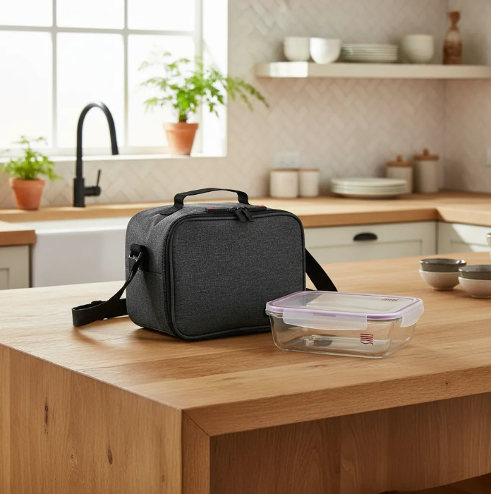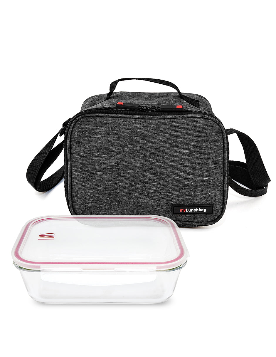 Fabricado en borosilicato que aguanta altas temperaturas y es apto para microondas, horno y lavavajillas. 100% hermético gracias a su tapa con aletas. La capacidad del contenedor es de: 0.84L. La bolsa tiene paredes gruesas isotérmicas y su interior es plastificado.