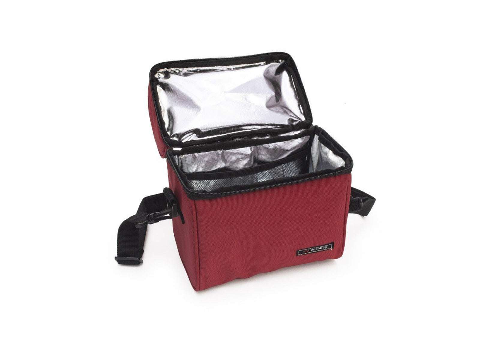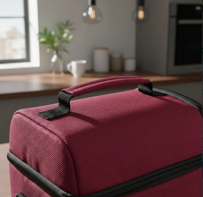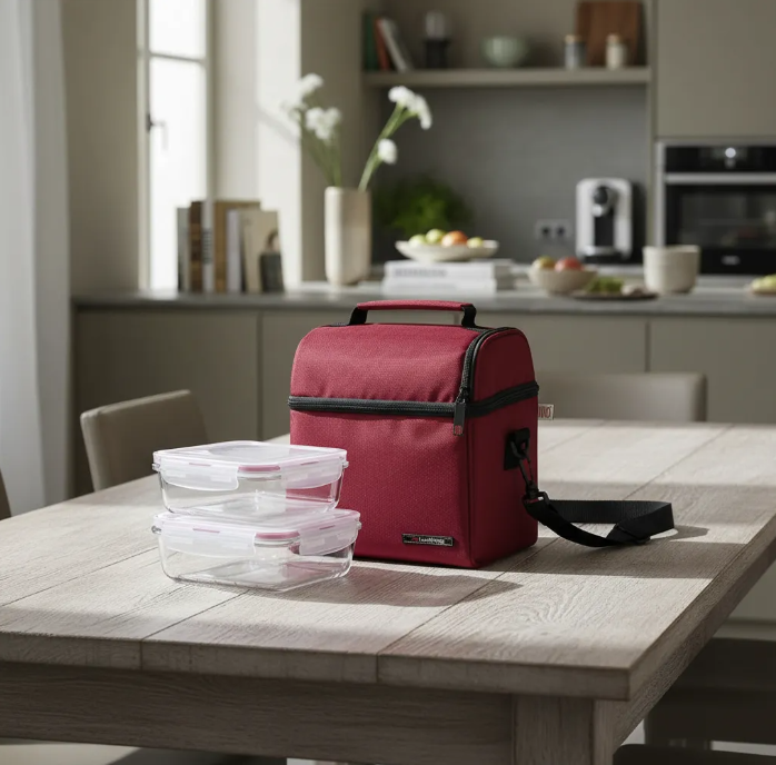 El exterior de poliéster proporciona durabilidad, mientras que el interior textil metalizado termoinsulado garantiza un excelente rendimiento térmico. Incluye dos recipientes de vidrio de 570 ml y 840 ml, ideales para mantener la comida organizada y libre de derrames. Con un único compartimento, esta lonchera es fácil de usar y limpiar, convirtiéndola en una opción conveniente para el día a día.