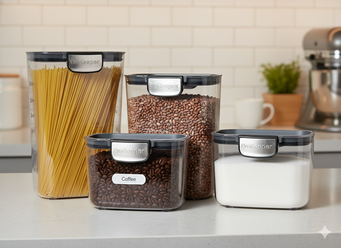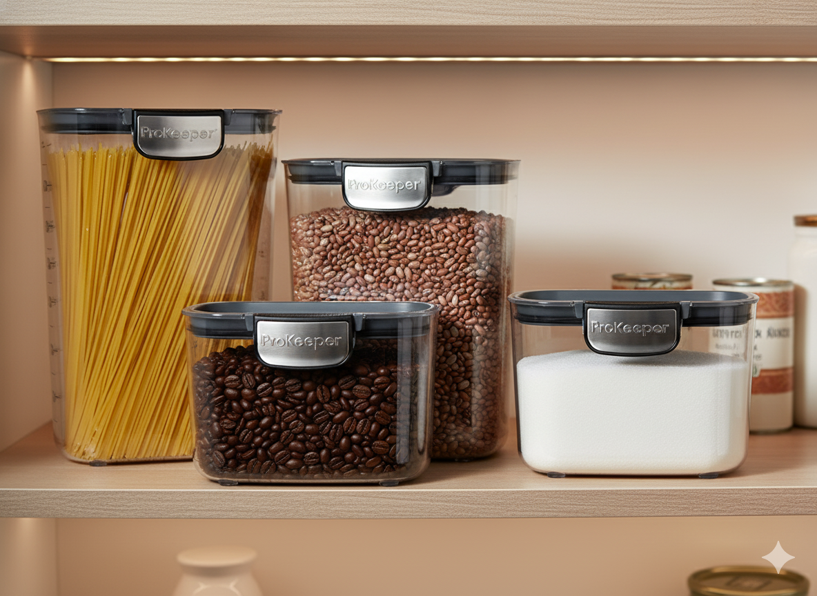 Organiza tu cocina con estilo y practicidad con el Set de 4 Contenedores ProKeeper+. Diseñados para conservar tus alimentos frescos por más tiempo, cuentan con sellos herméticos que evitan la humedad y mantienen la textura y sabor de cada ingrediente.
